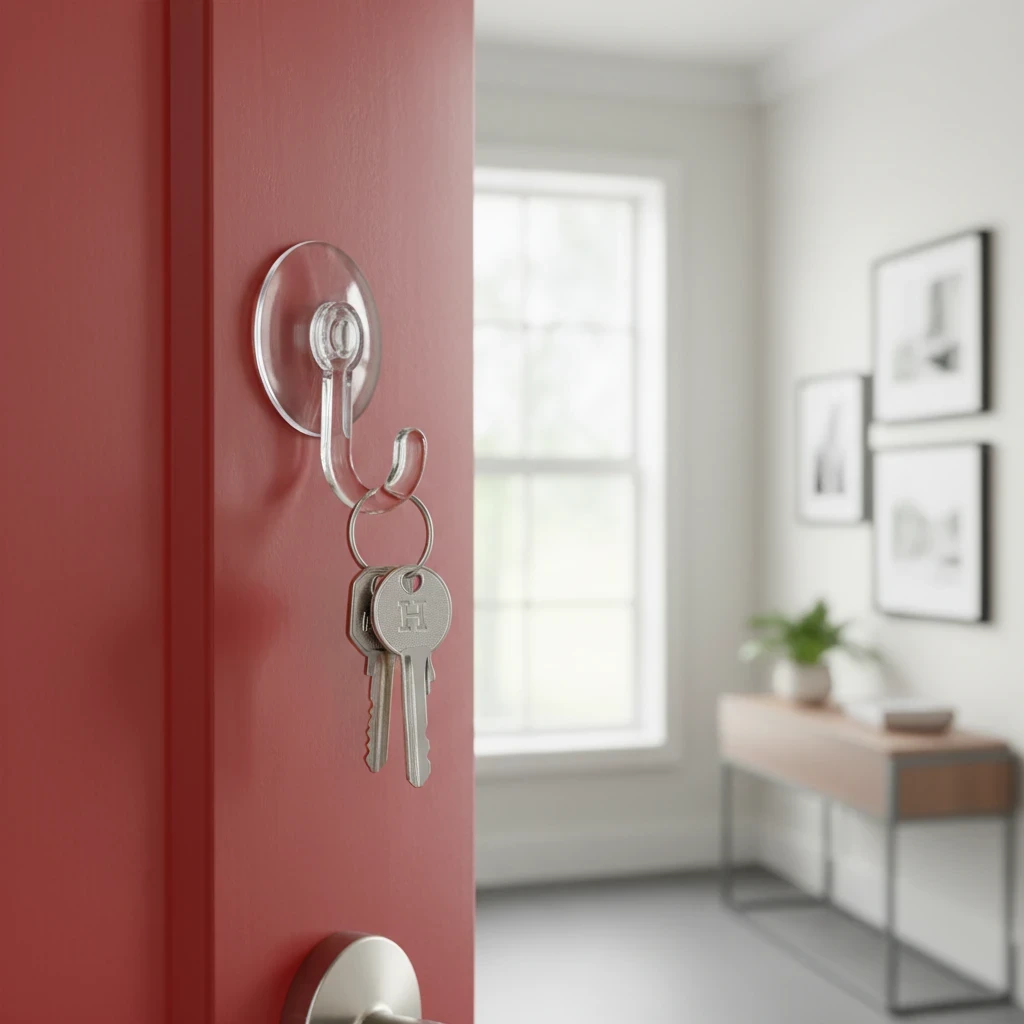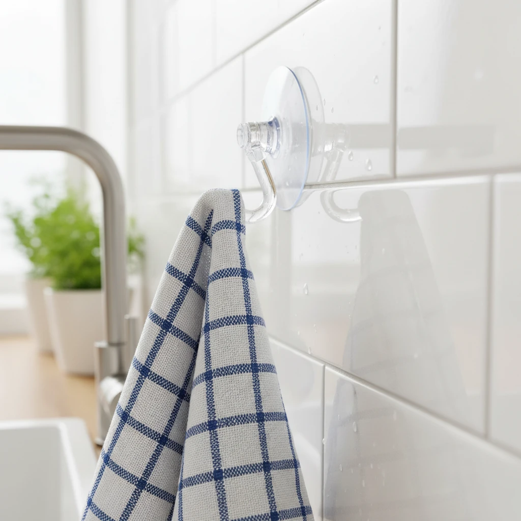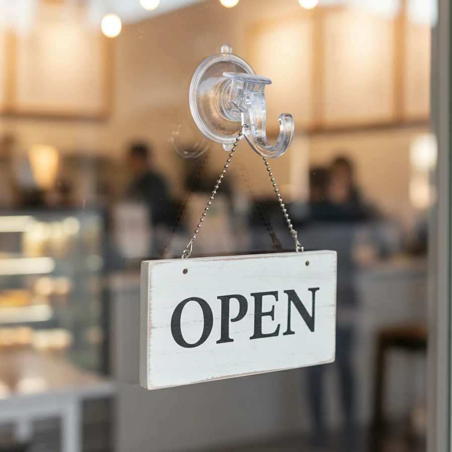 Suction cup hooks are a convenient accessory to hang items without the need for drilling, glue or nails. They stick to smooth, non-porous surfaces like glass, tile, and metal using a vacuum seal created by the suction cup. They are a perfect way to hang open/closed sign on glass door of retail stores.